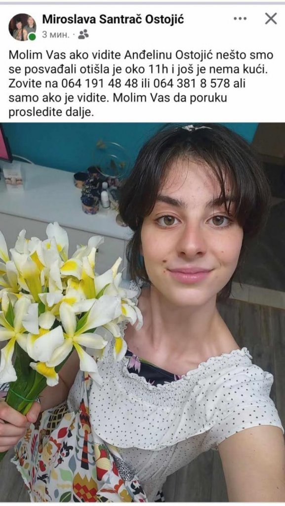 Anđelina Ostojić (22) iz Kikinde, studentkinja Tehničkog fakulteta "Mihajlo Pupin" u Zrenjaninu, napustila je oko 11 sati roditeljski dom, nakon čega joj se gubi svaki trag.