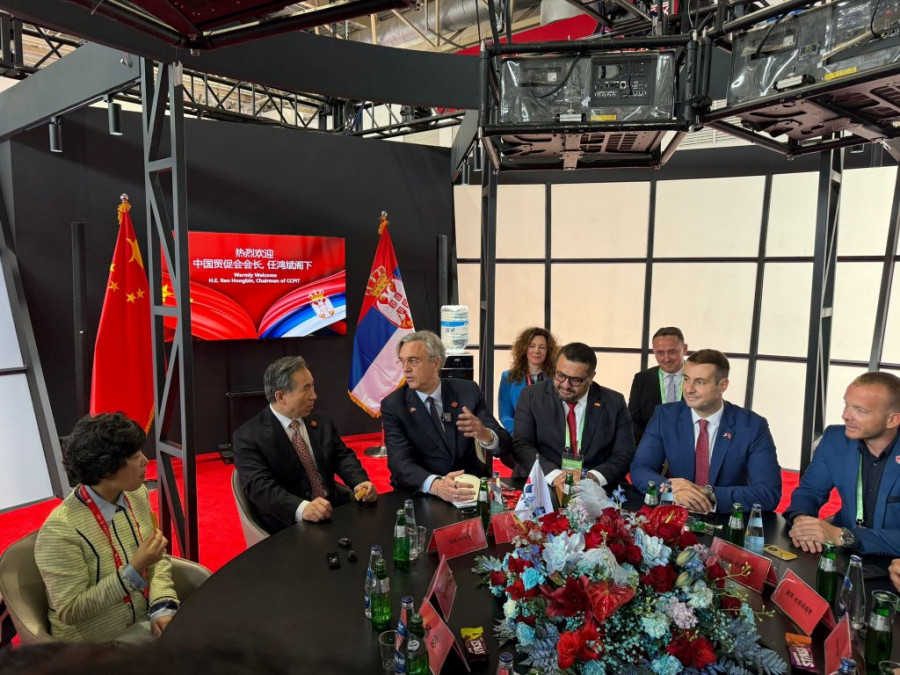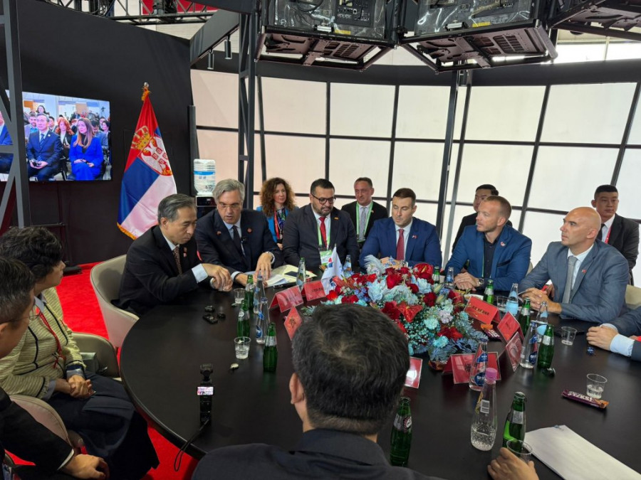 Nacionalni štand Srbije, smešten u hali posvećenoj digitalnim tehnologijama, posetio je Ren Hongbin, predsednik Kineskog saveta za promociju međunarodne trgovine (CCPIT), koji je u razgovoru sa Markom Čadežom, predsednikom Privredne komore Srbije, istakao značaj saradnje i podrške pozicioniranju srpskih kompanija na kineskom tržištu. Hongbin je bio u prilici da proba srpska vina i proizvode, među kojima je čuvena Bambijeva „plazma“.