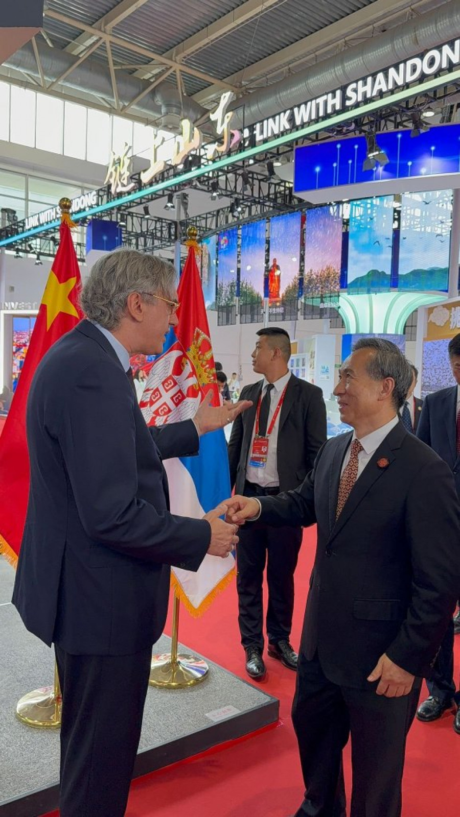 - Prisustvo Srbije na jednom od najvećih svetskih i kineskih sajmova je snažna poruka da naša privreda ima šta da ponudi svetu. Srpske kompanije imaće priliku da se pozicioniraju u lance snabdevanja velikih kineskih sistema i dogovore nove poslove. Lično ću imati sastanke sa najvećim tehnološkim kompanijama, kao što je Alibaba, i učestvovaću na forumima sa predstavnicima Nvidije i drugih teh-giganata, gde ćemo predstaviti napore Srbije u razvoju veštačke inteligencije - izjavio je Čadež. Predsednik PKS je nakon otvaranja sajma razgovarao sa predstavnicima kompanije Šandong.