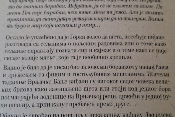 Gorki je svakog jutra ustajao u šest sati i odlazio na planinu Goč, koja ga je neodoljivo privlačila.