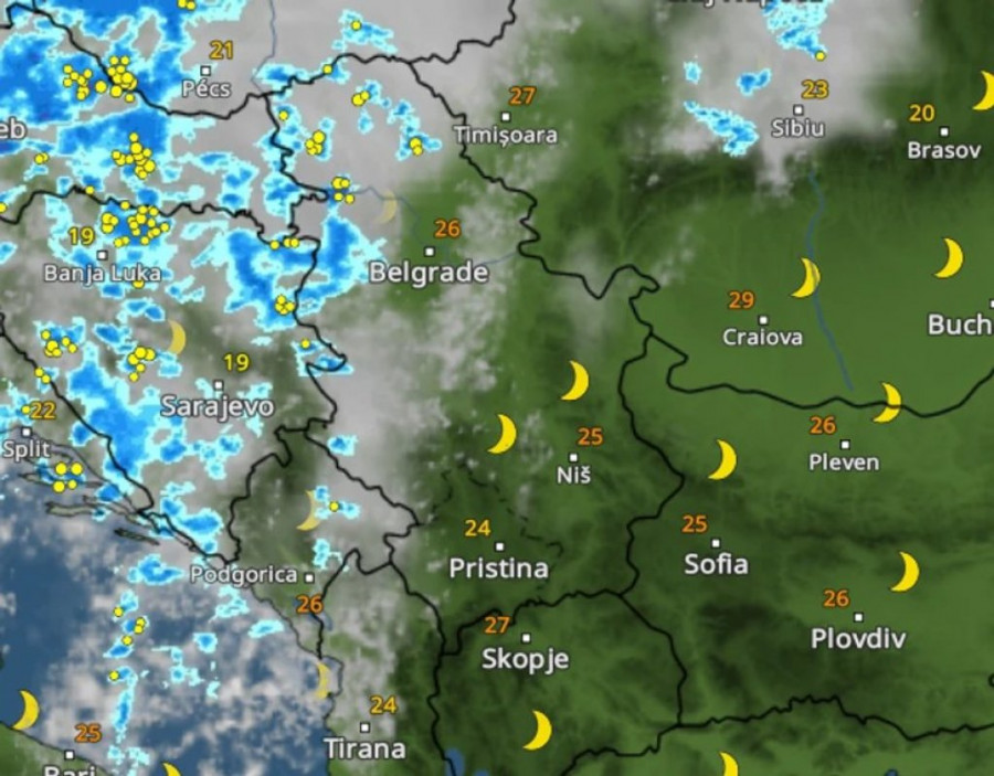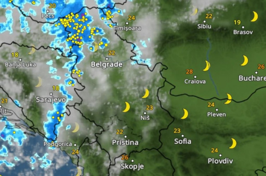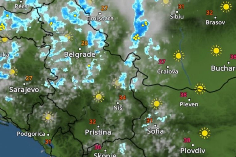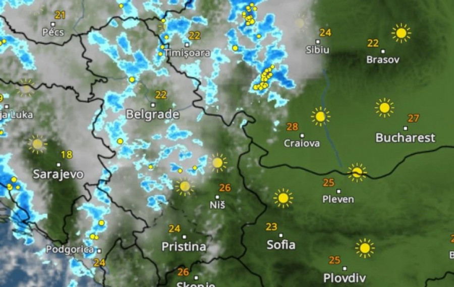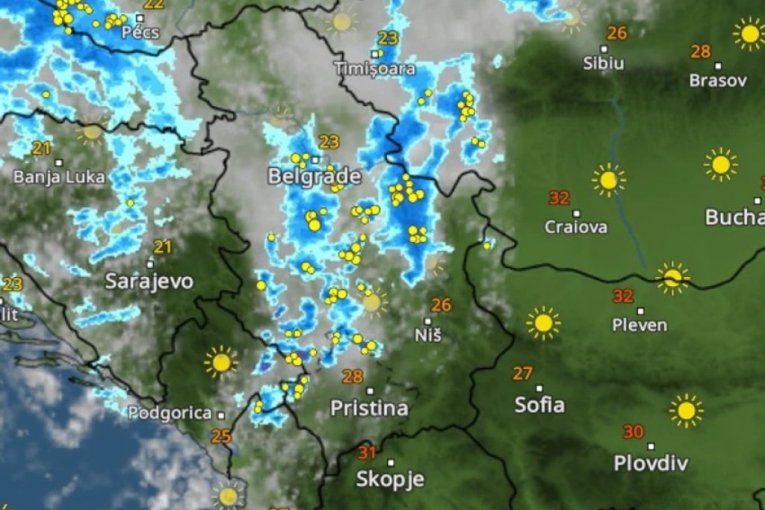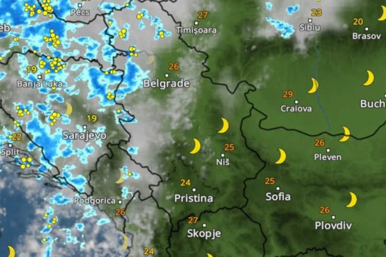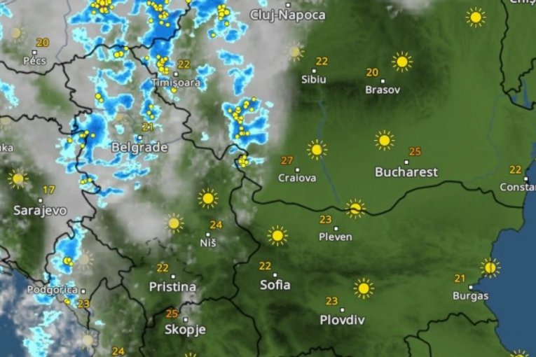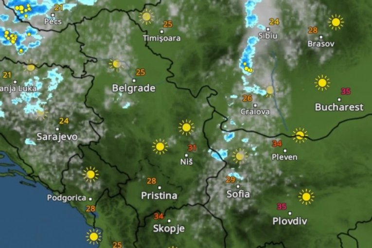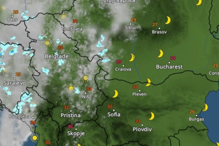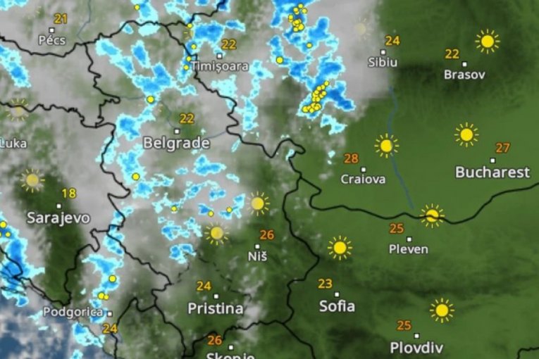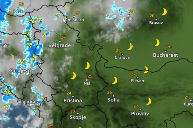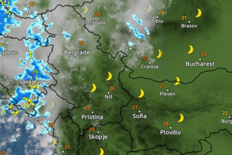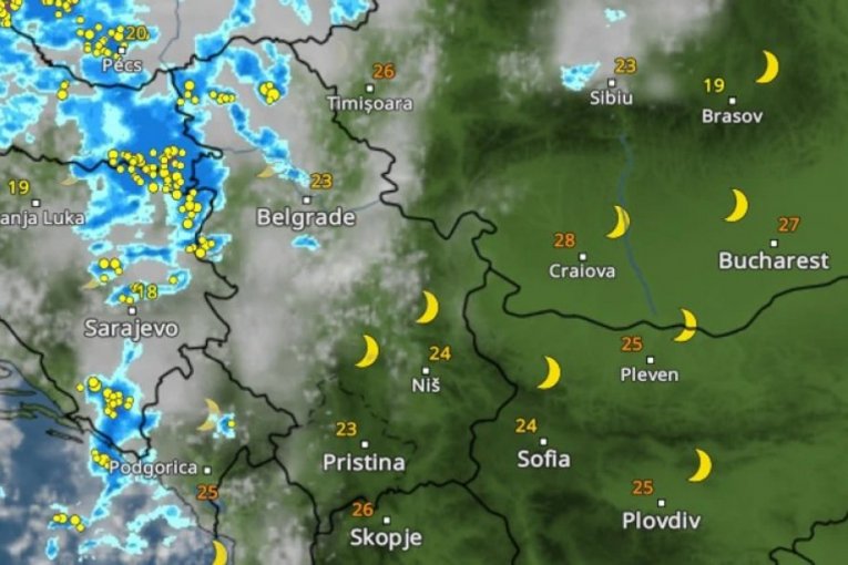 - Lokalno se očekuju vremenske nepogode: obilni plјuskovi sa grmlјavinom, grad i kratkotrajno jak i olujni severozapadni vetar u zoni najintenzivnijih plјuskova. Najviša dnevna temperatura od 25 na severozapadu do 33 stepni Celzijusovih na jugu i jugoistoku zemlјe - navodi RHMZ.