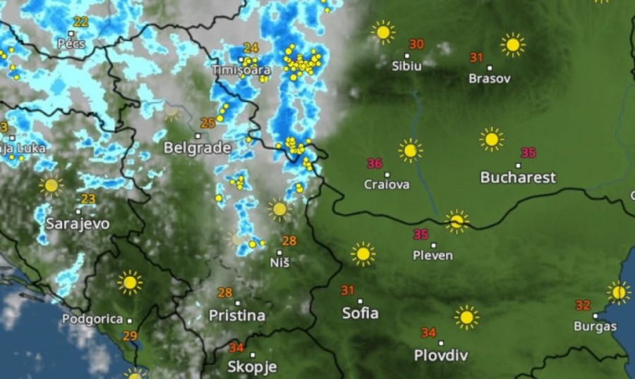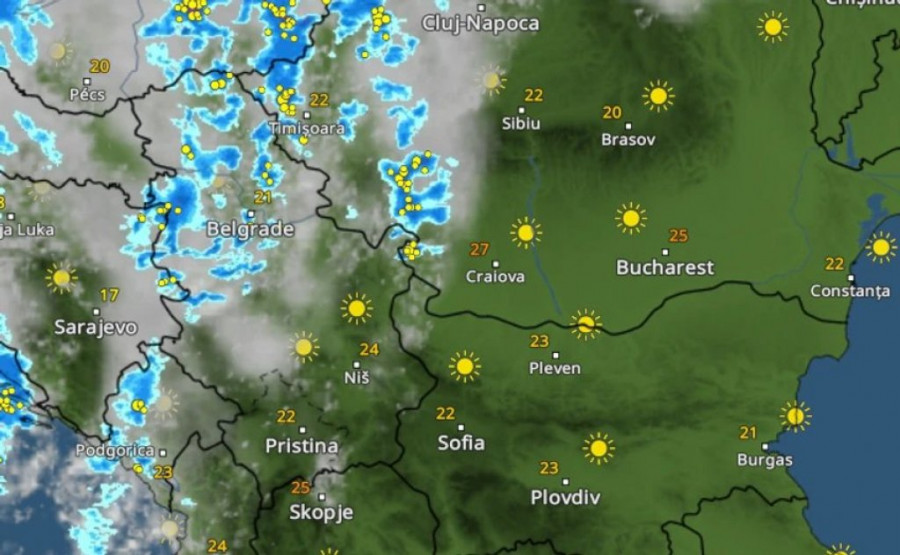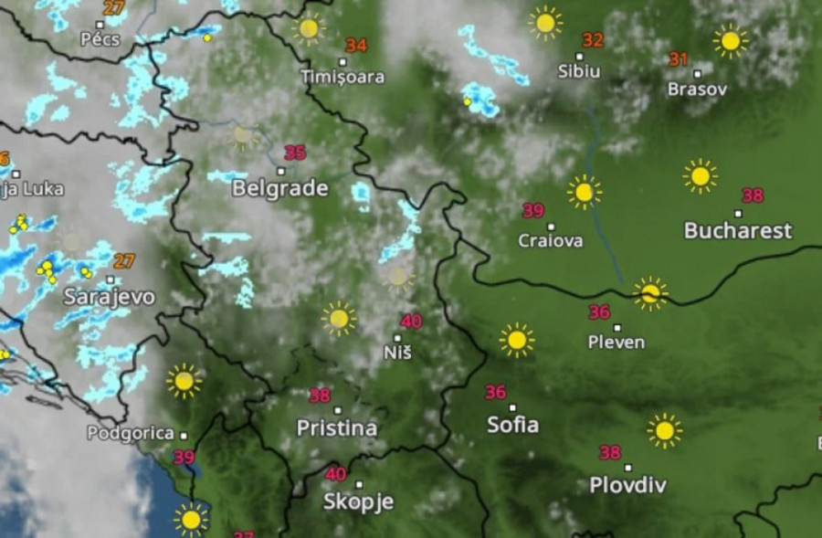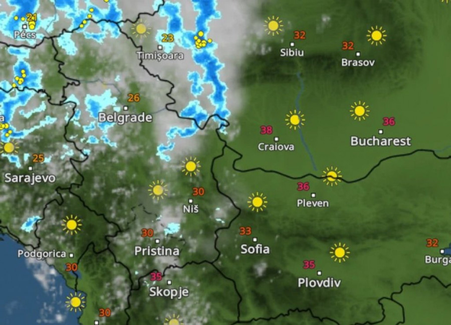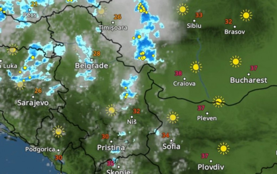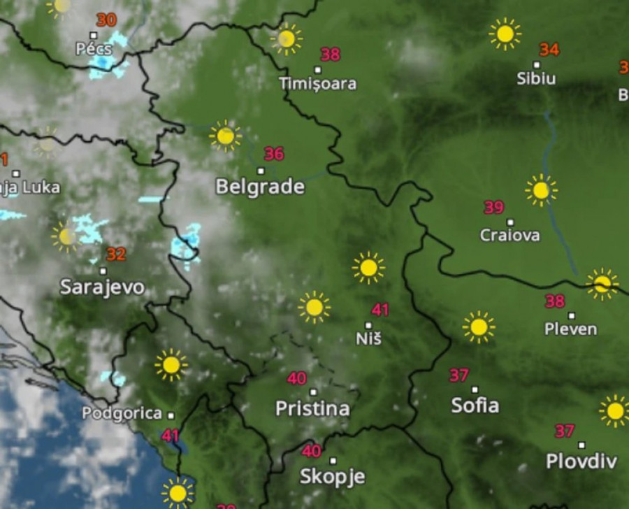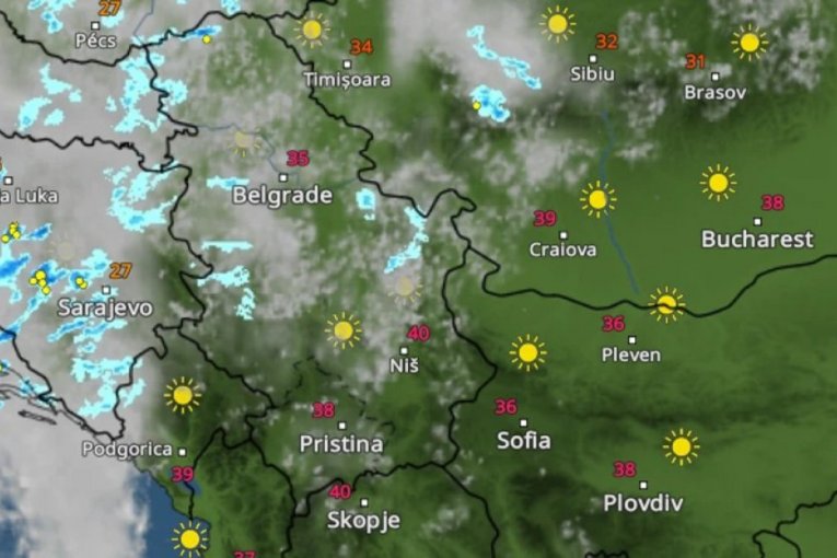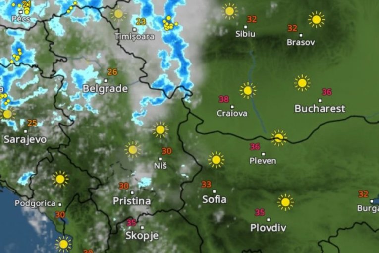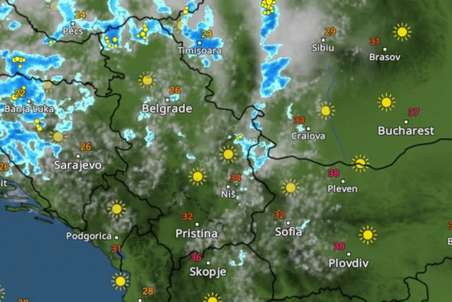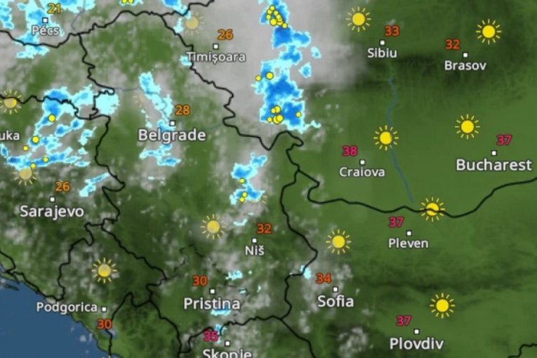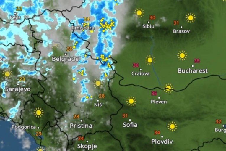 - Lokalno se očekuju vremenske nepogode: obilni plјuskovi sa grmlјavinom, grad i kratkotrajno jak i olujni severozapadni vetar u zoni najintenzivnijih plјuskova. Najviša dnevna temperatura od 25 na severozapadu do 33 stepni Celzijusovih na jugu i jugoistoku zemlјe - navodi RHMZ.