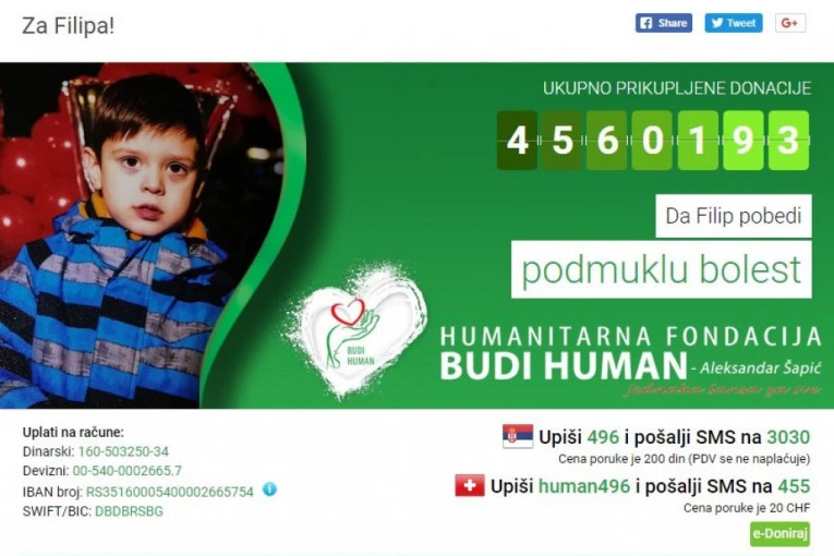 Da Filip pobedi podmuklu bolest! Budimo humani!