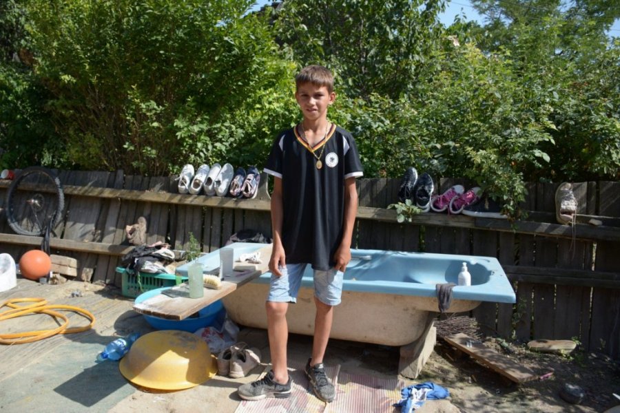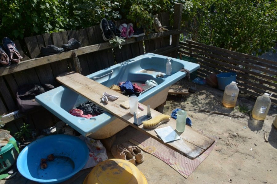 – Dobar dan, ljudi, i hvala vam na pomoći. Danas je pakleno vruće, skoro 40 stepeni, pa smo pobegli u hladovinu kod mog sina Marka. On ima struju, ali tamo nema mesta za sve nas. Anđela je prešla kod njih, a Dule i ja smo ostali ovde. Sad kad je raspust, Dušana možete naći ili u kući ili na deponiji, a ja idem na posao u Padinsku skelu, gde berem metlice sa kukuruza. Dnevnica mi je 2.800 dinara, pa mogu da kupim brašno, ulje, šećer, prašak za veš – priča Zora, pokazujući na plavu ugradnu kadu koja stoji ispred ulaza u kuću.