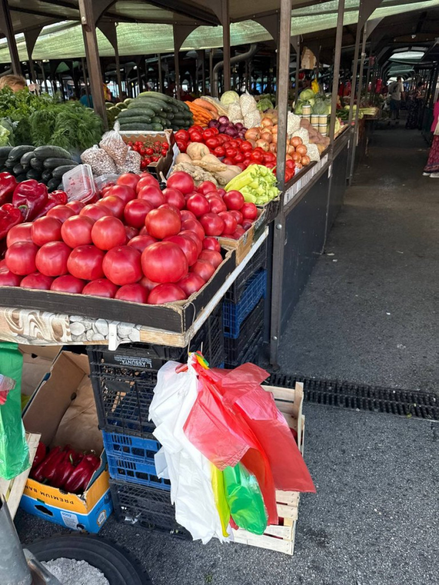 Na Bajlonijevoj pijaci, gde smo obišli tezge, paradajz se kreće oko 200 dinara za kilogram, paprika takođe 200 dinara, dok krastavci i patlidžan koštaju oko 150 dinara.