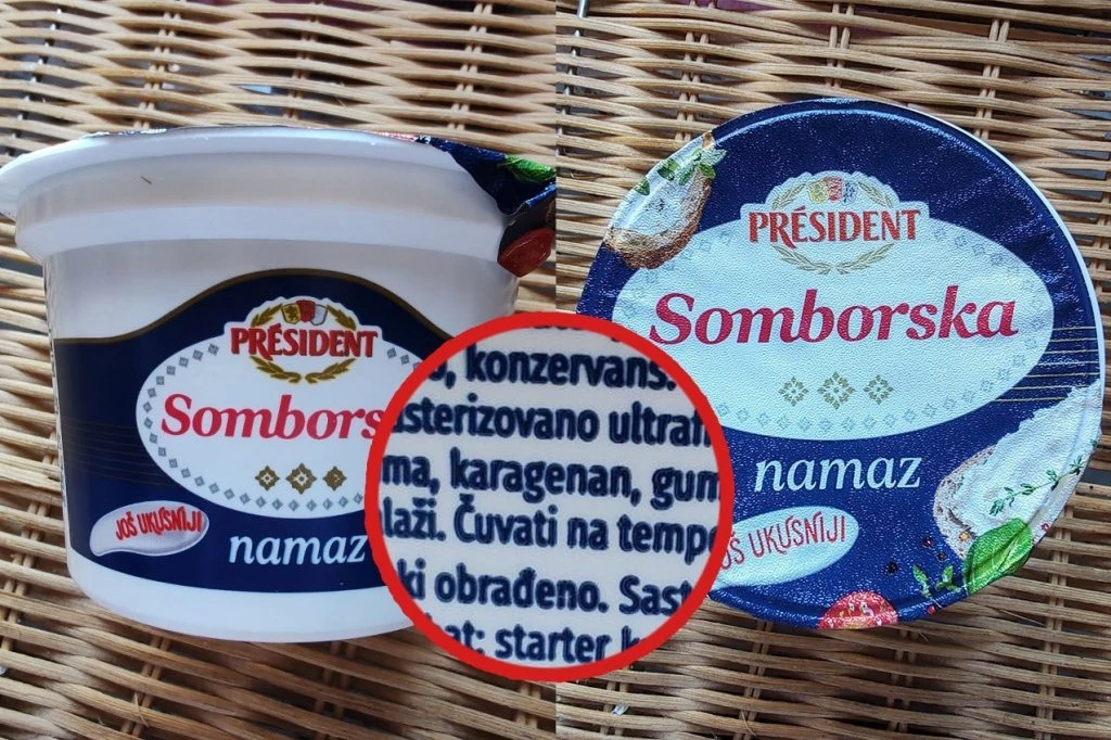 Na društvenim mrežama pojavio se snimak o sastavu sirnog namaza somborske mlekare, koji je izazvao pažnju jer sadrži čak pet aditiva, među njima i karagenan (E407). Ovaj aditiv dobija se iz morskih algi i koristi kao zgušnjivač i emulgator u prehrambenoj industriji.
