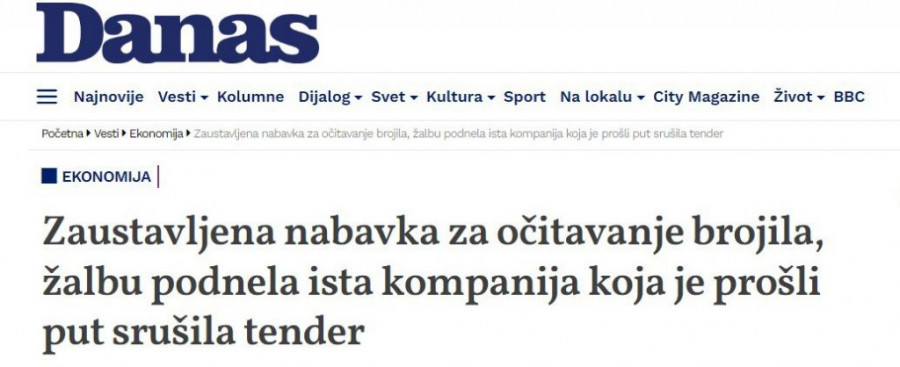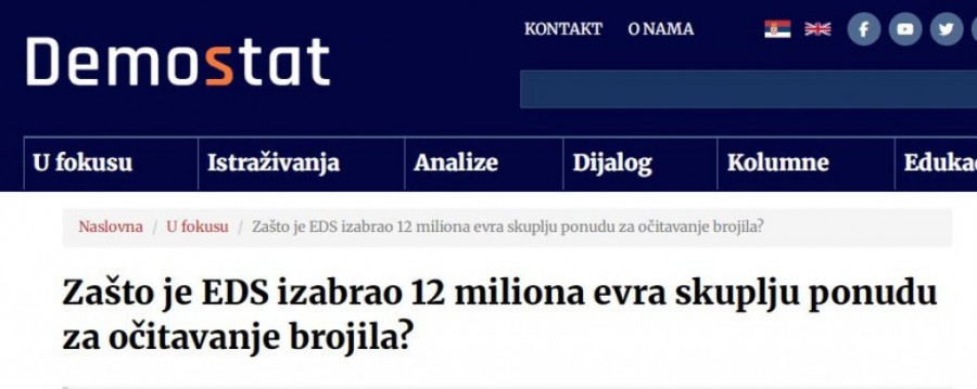 Tender EDS za posao očitavanja brojila, čija je vrednost procenjena na 2,4 milijarde dinara (oko 20 miliona evra), oboren je krajem decembra prošle godine i opet je privremeno zaustavljen krajem oktobra. Sve zbog sumnjivog delovanja pomenutog konzorcijuma.