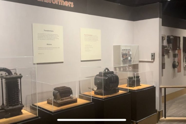 Na izložbi ogromnih i upečatljivih eksponata postoji fotografija Nikole Tesle iz mladosti, ne veća od pola A4 formata, ispod koje piše: "Nikola Tesla (1856-1943), čiji su roditelji bili Srbi, rođeni u Hrvatskoj. Obrazovao se u Evropi. Došao je u Njujork 1884, kada je kratko radio za Edisona. Patentirao je motor na naizmeničnu struju 1988.