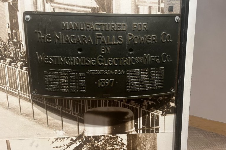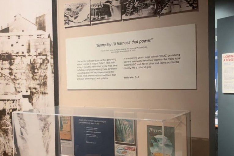 Na izloženoj tabli Vestinghausove kompanije, napravljenoj za elektranu na Nijagari, navedeno je devet Teslinih patenata iz 1888, ali je na panelu pored istaknuta rečenica iz vremena kada je, kako piše, Tesla bio dečak i samo gledao sliku moćnih Nijagarinih vodopada: "Jednoga dana ukrotiću tu snagu."