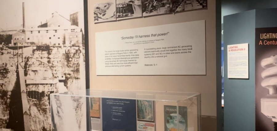 Teslini patenti kojima je ukrotio Nijagarine vodopade prikazani su kroz Vestinghausovu kompaniju, u delu izložbe "Revolucionarni poduhvat završen - Nijagarini vodopadi".