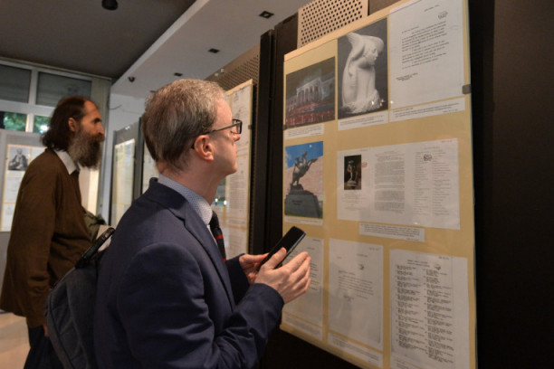 Foto: Tanjug/R. PrelićIzložbu je otvorio američki ambsador Kajl Skot koji je rekao da mu je čast da bude na otvaranju izložbe koja govori o stogodišnjici odnosa Srbije i SAD, koliko je prošlo od kako se srpska zastava zavijorila na Beloj Kući.