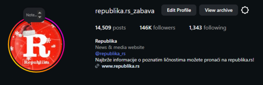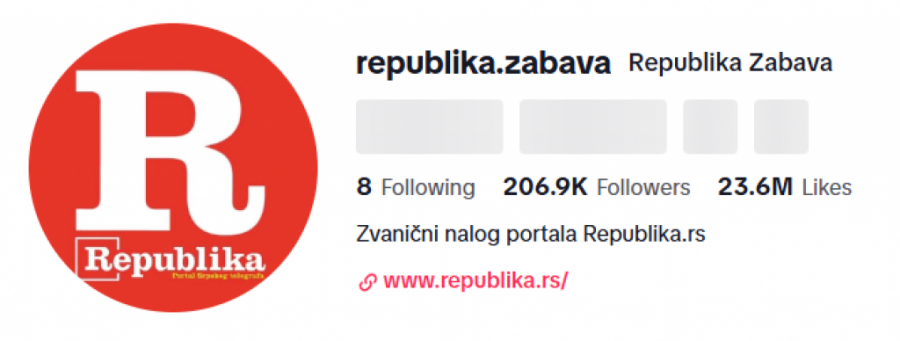 - Republika Zabava zabeležila je čak 31.541.957 pregleda, potvrđujući status jednog od najviralnijih profila u zemlji