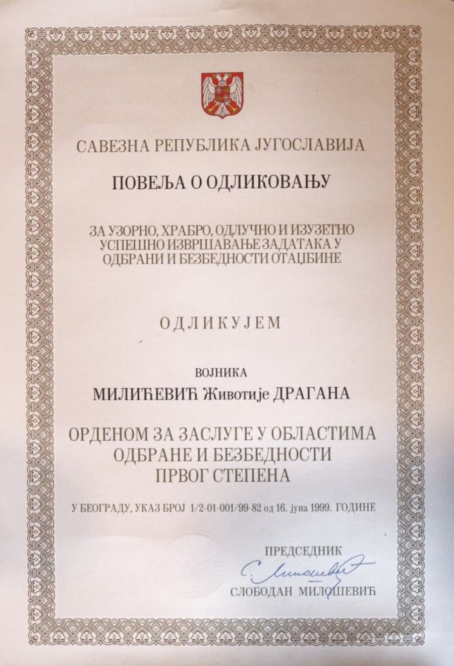 Orden za zasluge od Miloševića