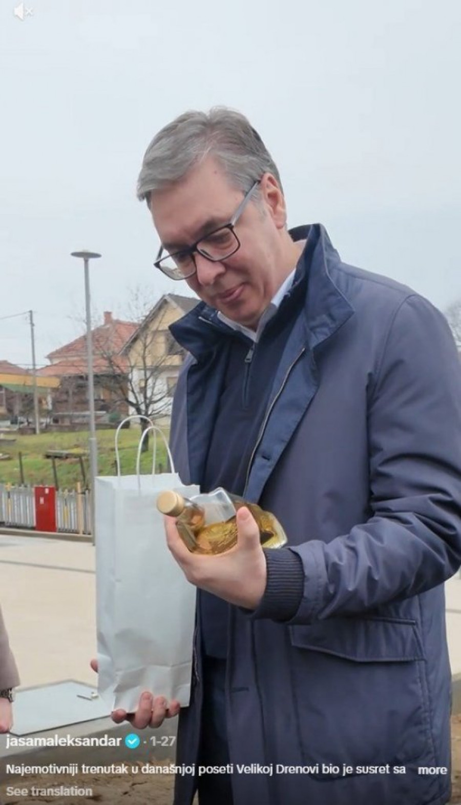 - To je mali znak pažnje i hvala mu što je prihvatio taj poklončić. Kada je uzeo flašu i na njoj video grb i posvetu, pođoše mu suze. To je simbolično, da imate sećanje na jednog mladog čoveka, koji je voleo da živi, radi, ima porodicu, ali kome su nasilno oduzeli život. A jeste mi prethodno jedan iz protokola rekao: "Videćeš kakav je to čovek, koliki patriota i pod broj jedan veliki roditelj." Rekoh, znam, znam čoveka.