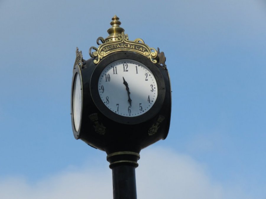 Novi sat, visok devet metara i težak oko sedam i po tona, postavljen je u toku noći u središte kružnog toka na Trgu republike u Beogradu i odmah je pušten u rad.