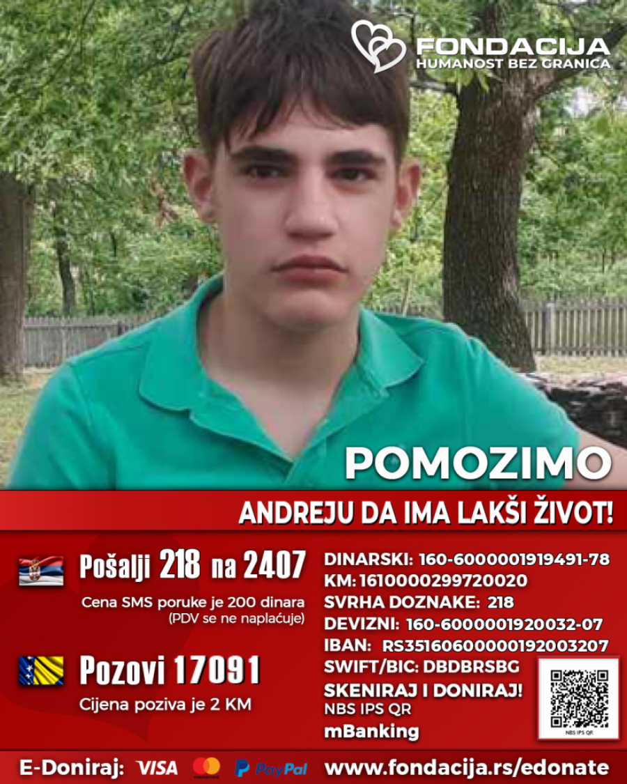 Svaka pomoć mnogo znači i korak je ka tome da Andrej ostvari svoje snove i nastavi da napreduje.