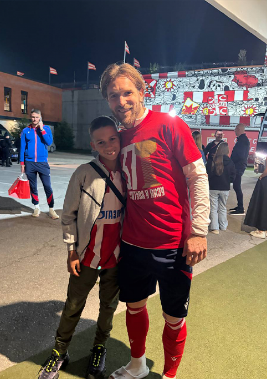 U saradnji sa Fudbalskim klubom Crvena zvezda, Dule je juče doživeo dan za pamćenje - našao se na tribinama stadiona "Rajko Mitić", gde je uživo pratio 179. večiti derbi između Crvene zvezde i Partizana. Uz hiljade navijača, bio je deo atmosfere koja se ne zaboravlja, ali i slavlja devete uzastopne titule prvaka Srbije.