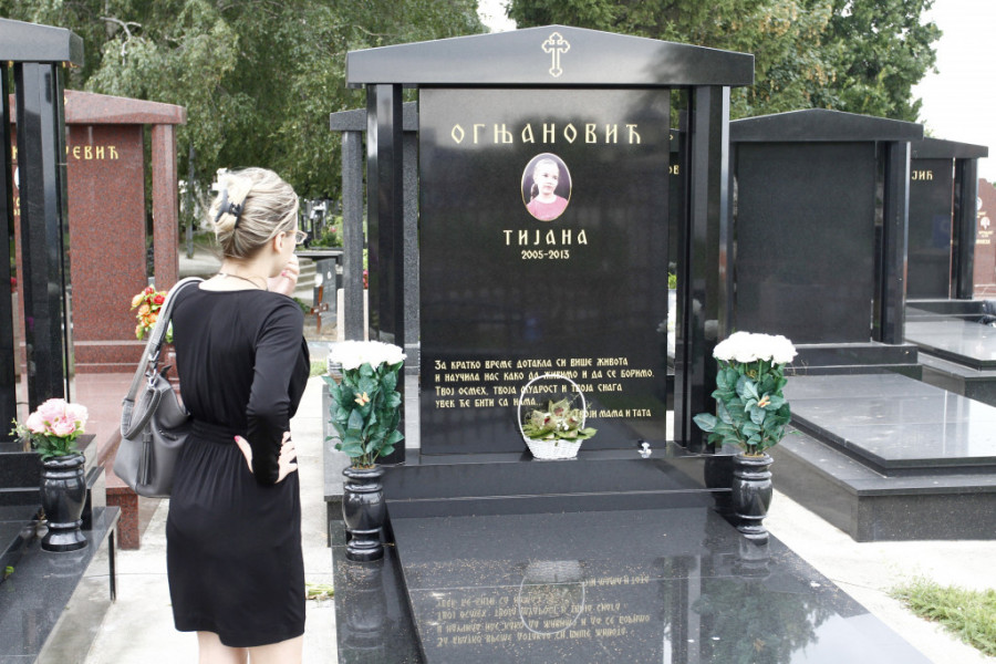 Foto: ST/V. LUKIĆTijana je umrla 15. jula, posle operacije u bolnici u Hjustonu na koju su lekari bili primorani jer se njeno zdravstveno stanje pogoršalo. Baš tih dana trebalo je da ide na transplantaciju srca, ali je nije dočekala. Povodom godišnjice Tijanine smrti, na groblju Lešću ostavljena su dva velika bela buketa, poput simbola dečje duše koja nije dočekala da odraste, i jedna korpa sa cvećem pored koje su spušteni plavo slonče i tri male školjke.