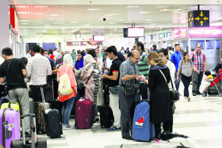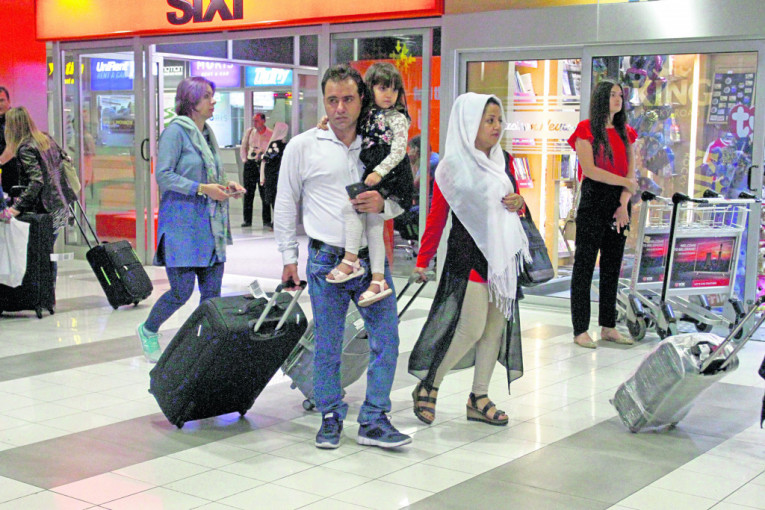Foto: ST/V. LUKIĆEkipa Srpskog telegrafa bila je na aerodromu prošlog četvrtka ujutru, kada sleće avion iranske kompanije "Mahan er" iz Teherana. Tog dana, tri puna autobusa "Aris travela" (od kojih jedan na sprat) čekalo je ispred aerodroma oko 200 iranskih državljana, među kojima je najviše bilo mladih bračnih parova s decom. Uz sve ostalo, struktura putnika ne ostavlja ni trunku sumnje da tu o turizmu nema ni govora.