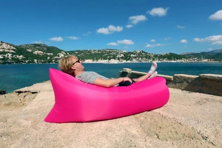 Letnjih hit - ležaljka AIR SOFA koja se ne naduvava, već se njome "uhvati" vazduh i zaveže dostupna je za samo 1.000 dinara. Lako se nosi, pakuje se u malu laganu torbicu i može da pluta na vodi.