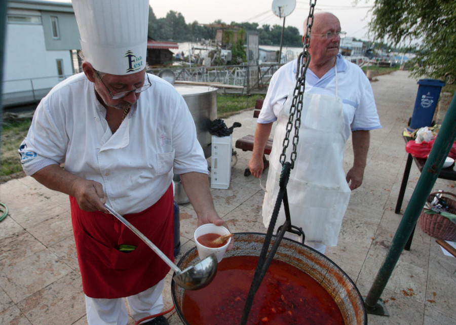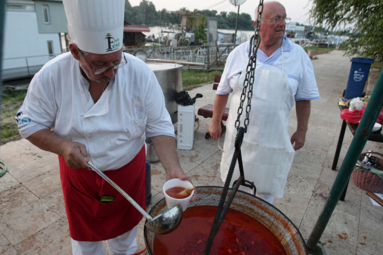 U pozitivnoj atmosferi pored reke, gde se uveliko širi miris ribljih specijaliteta, u kotlu od sto litara tradicionalnu riblju čorbu priprema amaterski kuvar iz Sombora Ivan Terek.
