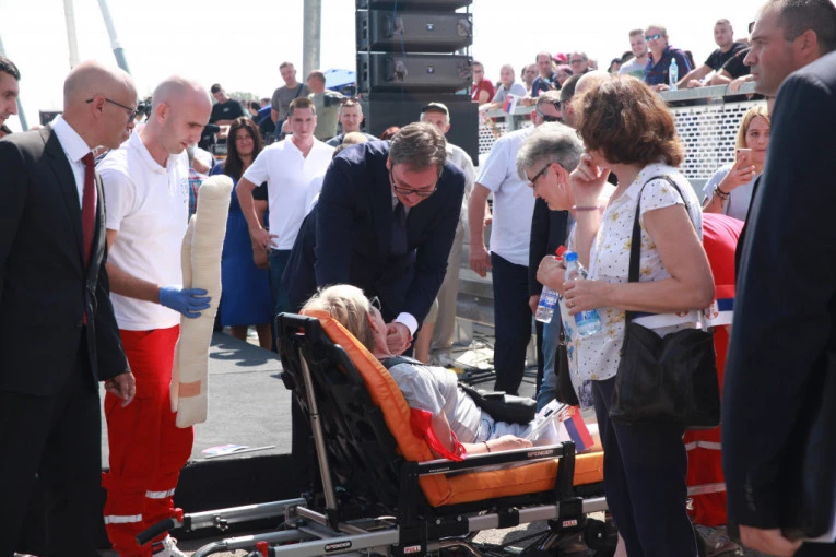 (FOTO) Žena slomila nogu na otvaranju mosta, Vučić joj se našao MEĐU PRVIMA!