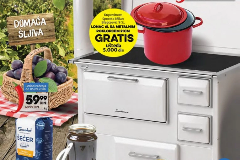Osim šljiva, koje su na popustu i možete da ih kupite po ceni od samo 59,99 dinara, u Rodi možete da kupite čak i šporet na čvrsta drva Smederevac i da pritom u vašem džepu ostane čak 5.000 dinara, a da pritom na poklon dobijete i veliku šerpu u kojoj možete da pripremite svoj slatki specijalitet.