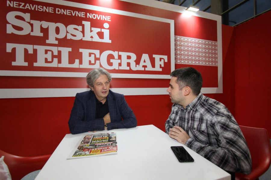Iako je četvrtak već tradicionalno na Sajmu knjiga dan posvećen školarcima, hale i prolazi su se i tokom petka šarenili od đačkih ranaca i orili od njihovih priča. Upravo ta činjenica nije olakšala ulaz na Sajam medija glumici Jeleni Gavrilović i njenom kolegi Stefanu Buzuroviću, kojima je trebalo mnogo više vremena da od kapije Beogradskog sajma stignu do Hale 3 i štanda Srpskog telegrafa.