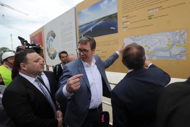 Foto: Tanjug/ FILIP KRAINČANIĆ- Verujem da ću sledeće nedelje uspeti da završim dolazak jedne velike, jedne od tehnološki najnaprednijih nemačkih kompanija, u Srbiju - preneo je Vučić novinarima posle obilaska radova na izgradnji mosta Surčin-Obrenovac.