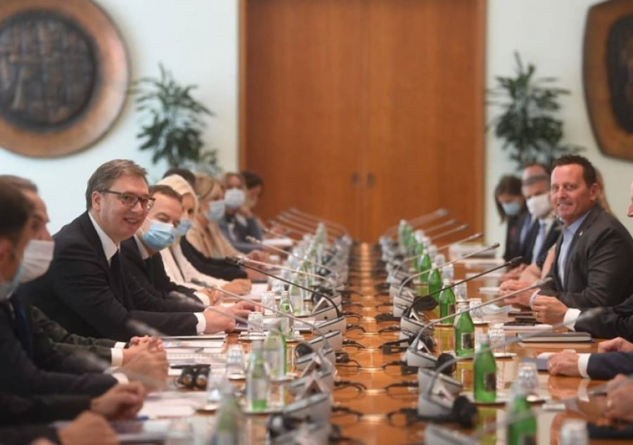 Predsednik Republike Srbije Aleksandar Vučić i predsednica Vlade Republike Srbije Ana Brnabić sastali su se sa specijalnim izaslanikom predsednika Donalda Trampa za dijalog Beograda i Prištine Ričardom Grenelom i izvršnim direktorom američke Međunarodne razvojne finansijske korporacije DFC Adamom Bolerom.