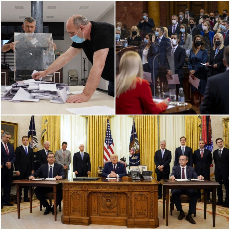 Mnogi su se pitali šta je potpisano u Ovalnom kabinetu Donalda Trampa. Elem, Priština je pristala da godinu dana ne traži članstvo u međunarodnim organizacijama, Beograd da isto toliko ne vodi kampanju za povlačenje priznanja, potpisano je takođe i međusobno poštovanje slobode veroispovesti i zaštite verskih objekata, u Kosovskom tzv.Kosovo i Izrael pristaju na međusobno priznanje, u srpskom Beograd pristaje da otvori kancelariju privredne komore i državnu kancelariju u Jerusalimu, a do 1. jula 2021. i ambasadu.