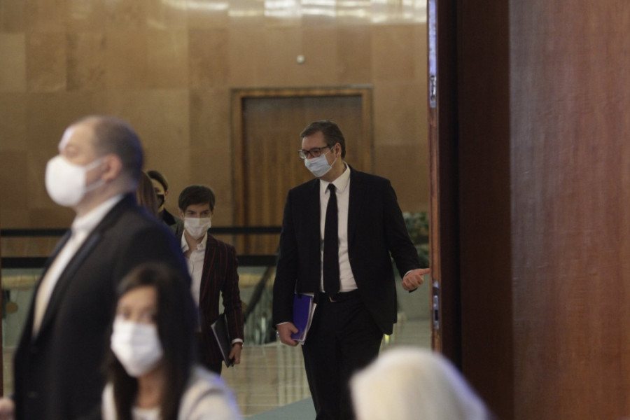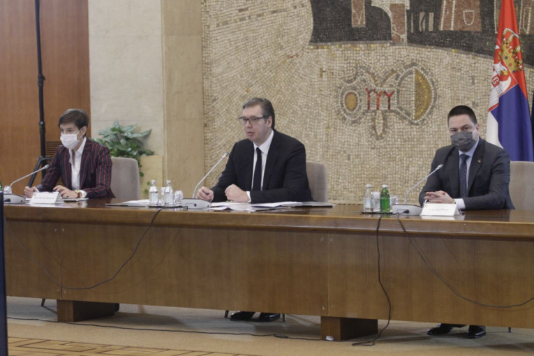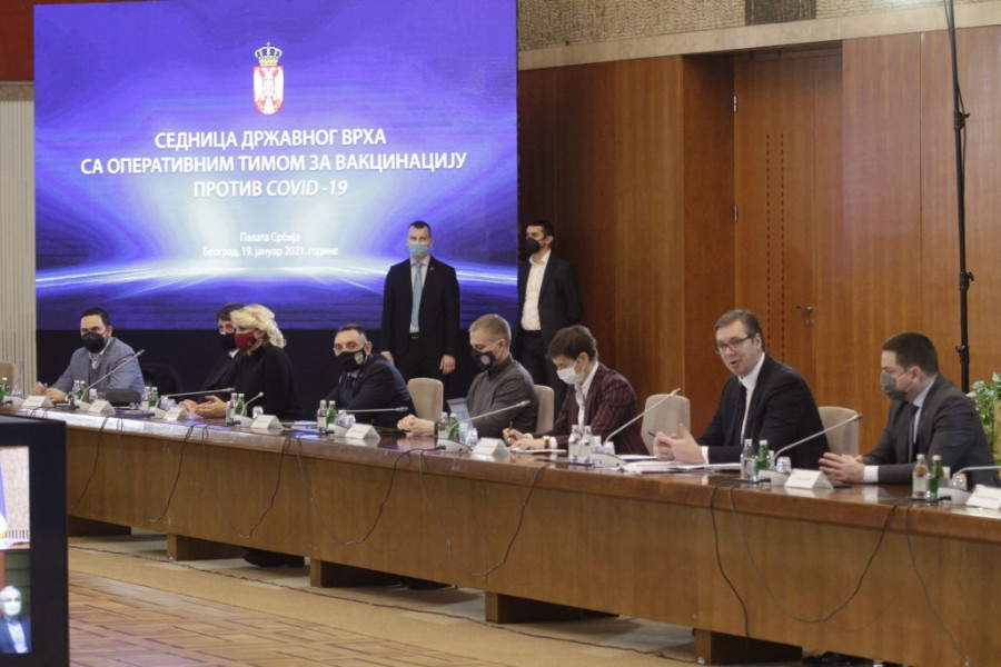 Foto: Tanjug/Sava Radovanović- Danas imamo jedan od najvažnijih sastanak za budućnost i život Srbije. Treba da donosemo odluke o vakcinaciji i opstanku u napretku zemlje i naših građana. Vakcinacija je od presudnog značaja za Srbiju i bez nje nikada nećemo pobediti koronu. Ne samo da u zdravstenom i medicinskom smislu već ćemo i u ekonomskom smislu zemlju dovesti do ivice propasti - rekao je predsednik.
