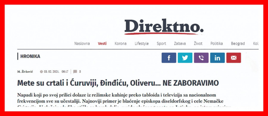 - Stvaranjem lažne slike o Grigoriju kao žrtvi, Đilasovi mediji, s jedne strane, vređaju i nipodaštavaju stvarne žrtve poput Ćuruvije, Đinđića i Ivanovića, dok, s druge strane, iznose lažnu i netačnu sliku o identičnosti režima koji je u Srbiji vladao do 2000. i današnje demokratski izabrane vlasti. Poput svog šefa, Đilasovi mediji iz dana u dan obmanjuju i dezinformišu javnost proglašavajući Srbiju fašističkom državom, u kojoj vlast ubija svoje neistomišljenike - kaže za Srpski telegraf direktor Centra za odgovorne medije Marko Matić.