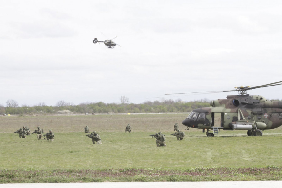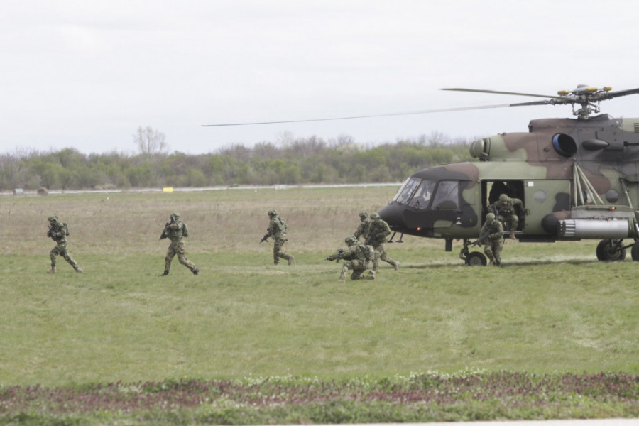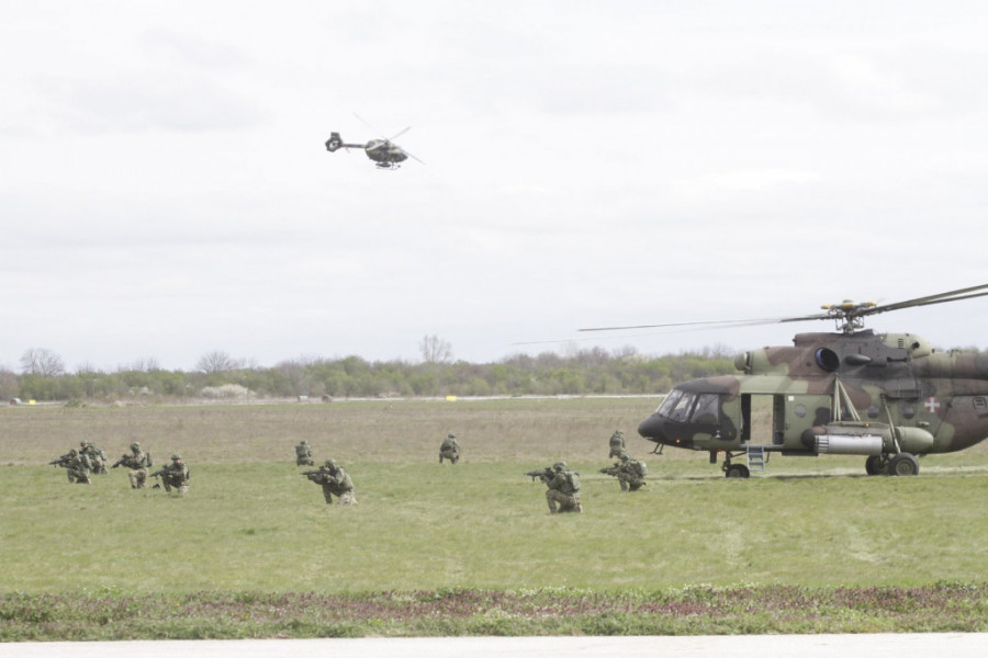 Foto: ST/V. LUKIĆU prikazu na Vojnom aerodromu "Pukovnik Milenko Pavlović" učestvuje deo jedinica Ratnog vazduhoplovstva i protivvazduhoplovne odbrane, Kopnene vojske, 72.brigade za specijalne operacije i 63.padobranske brigade.