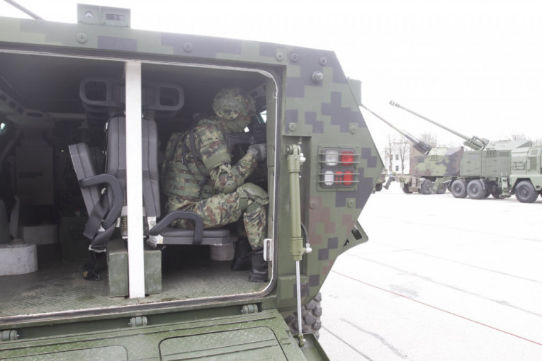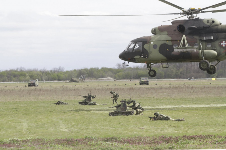 Foto: ST/V. LUKIĆU dinamičkom delu prikaza angažovano je 400 pripadnika Ministarstva odbrane i Vojske Srbije, preko 25 borbenih vozila i borbenih sistema, kao i 12 vazduhoplova.