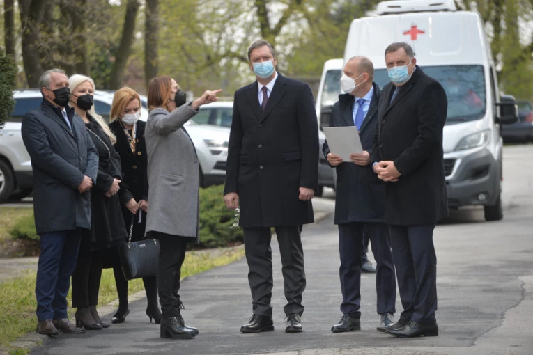 Predsednik Srbije Aleksandar Vučić, ministar zdravlja Zlatibor Lončar i član predsedništva BiH Milorad Dodik obilaze Institut Torlak gde počela proizvodnja ruske vakcine "Sputnik V".