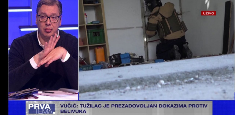 - Govore da im je nedostajalo 48 sati, zato smo imali najveći broj naših snajperista na otvaranju spomenika Stefanu Nemanji. Nisam imao pancir i nikada neću da ga nosim. Mene ne interesuje procedura. Vulin se tresao od straha, ja sam izašao i pročitao svoj govor. Falilo im je 48 sati, ali da li sam ja bio meta ili neko drugi, nemam dokaz. Kažu da im je veoma malo nedostajalo da preuzmi svu vlast u Srbiji. Ne mogu da izgovaram takve stvari bez najčvršćih dokaza. To je oružje sa MUP-ovog skladišta. MUP povremeno prodaje oružje, a naše je da nađemo ko je kupio to oružje i predao ga Belivuku. To je pancirna municija. Blindu koju sam dobio od šeika Muhameda na poklon vi njega ne možete da probijete automatom i da pucate. Ali ako uzmete ovu municiju napravićete pesak od tog automobila. Još nemamo dokaze - rekao je predsednik Vučić.
