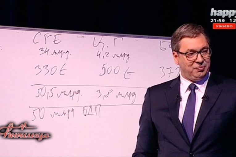 - Srbija je 2013. godine imala 34 milijarde ukupan bruto domaći proizvod, Crna Gora u tom trenutku 4 milijarde. Prosečna plata u Srbiji je tada bila oko 330 evra, a u Crnoj Gori 500 evra. To su vam 2013. i 2014. godina. Evo sada da vidite kakvu je razliku Srbija napravila 2021. godine. Srbija će ovu godinu završiti sa 55 milijardi BDP, napravili smo rast od 50 posto za samo 7 godina. Da li razumete kojom brzinom rastemo. Crna Gora ide ispod, čak na 3,5 milijardi - rekao je predsednik Srbije.