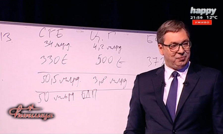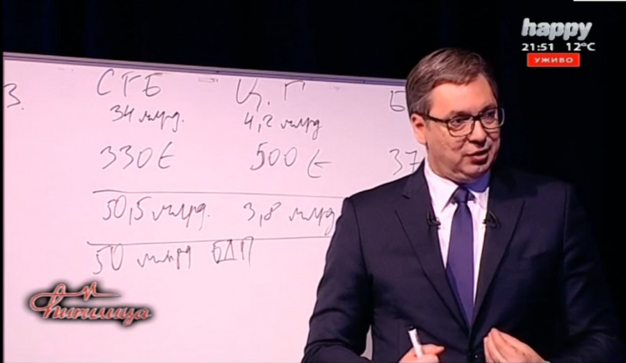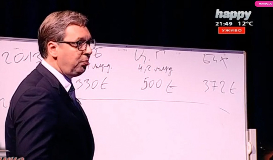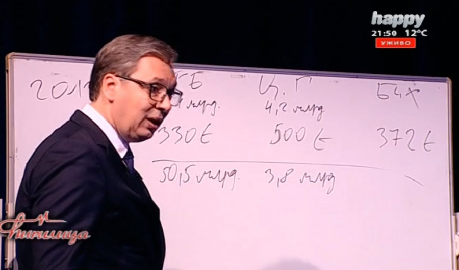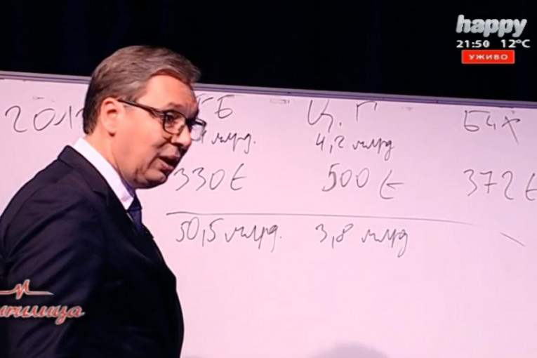 Predsednik Srbije Aleksandar Vučić pokazao je u emisiji Ćirilica na TV Hepi kod Milomira Marića ekonomske pokazatelje 2013. i 2021. godine.
