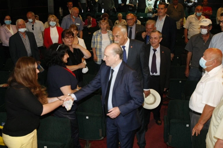 Foto: Beta/E. VAŠ- Svi penzioneri, svi zaposleni, svi poljoprivrednici kojima se obraćamo i koje imamo u vidu žele da im ova naša zemlja, jedna jedina, bude jaka. Mi danas izražavamo posebno zadovoljstvo jer primećujemo da ljudi iz okruženja konstatuju da je Srbija jaka, jaka tako što čini dobre stvari, pomoć u vakcinama je jedna od njih. Ali želimo isto tako da poručimo svima da je Srbija jaka i da kaže - NE svima onima koji se zaborave i krenu da dovode u pitanje naše ljudsko, nacionalno i državno dostojanstvo. Naravno da ćemo im reći - NE. Poslanička grupa PUPS-a i PUPS u celini, svi ljudi koji su na lokalu, oni koji su u izvršnoj vlasti, imaju to na umu i tako će delovati - izjavio je Krkobabić u Kulturnom centru Ruma.