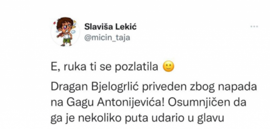 - E, ruka ti se pozlatila - prokomentarisao je Lekić na svom Tviter nalogu vest o napadu na Antonijevića.