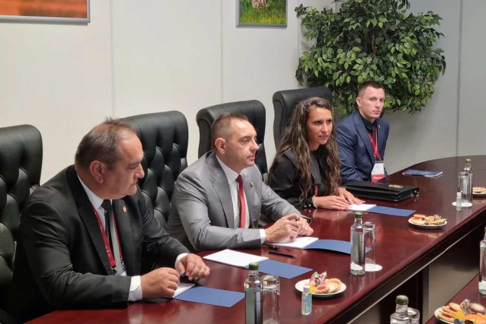 Ministar unutrašnjih poslova Aleksandar Vulin sastao se danas u parku Patriot kod Moskve sa direktorom Federalne službe za vojno-tehničku saradnju generalom armije Dmitrijem Šugajevim.