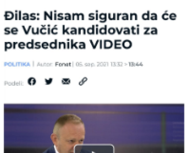 Nije, međutim, siguran da će se Aleksandar Vučić uopšte ponovo kandidovati za predsednika Srbije i predviđa da se to i neće dogoditi, jer "nema sigurnu pobedu u prvom krugu“.
