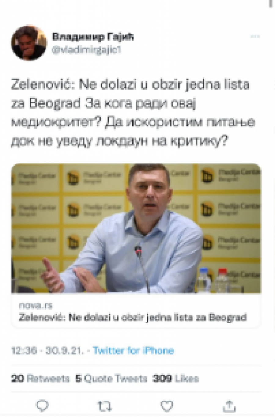 Naime, Vladimir Gajić postavio je pitanje na Tviteru: Za koga rade ovi mediokriteti?!