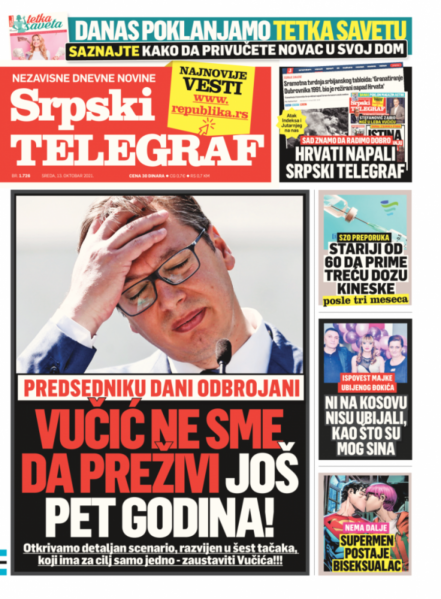 PISANJE SRPSKOG TELEGRAFA DOBILO ZVANIČNU POTVRDU: Istina je, mnogi priželjkuju ubistvo Aleksandra Vučića!
