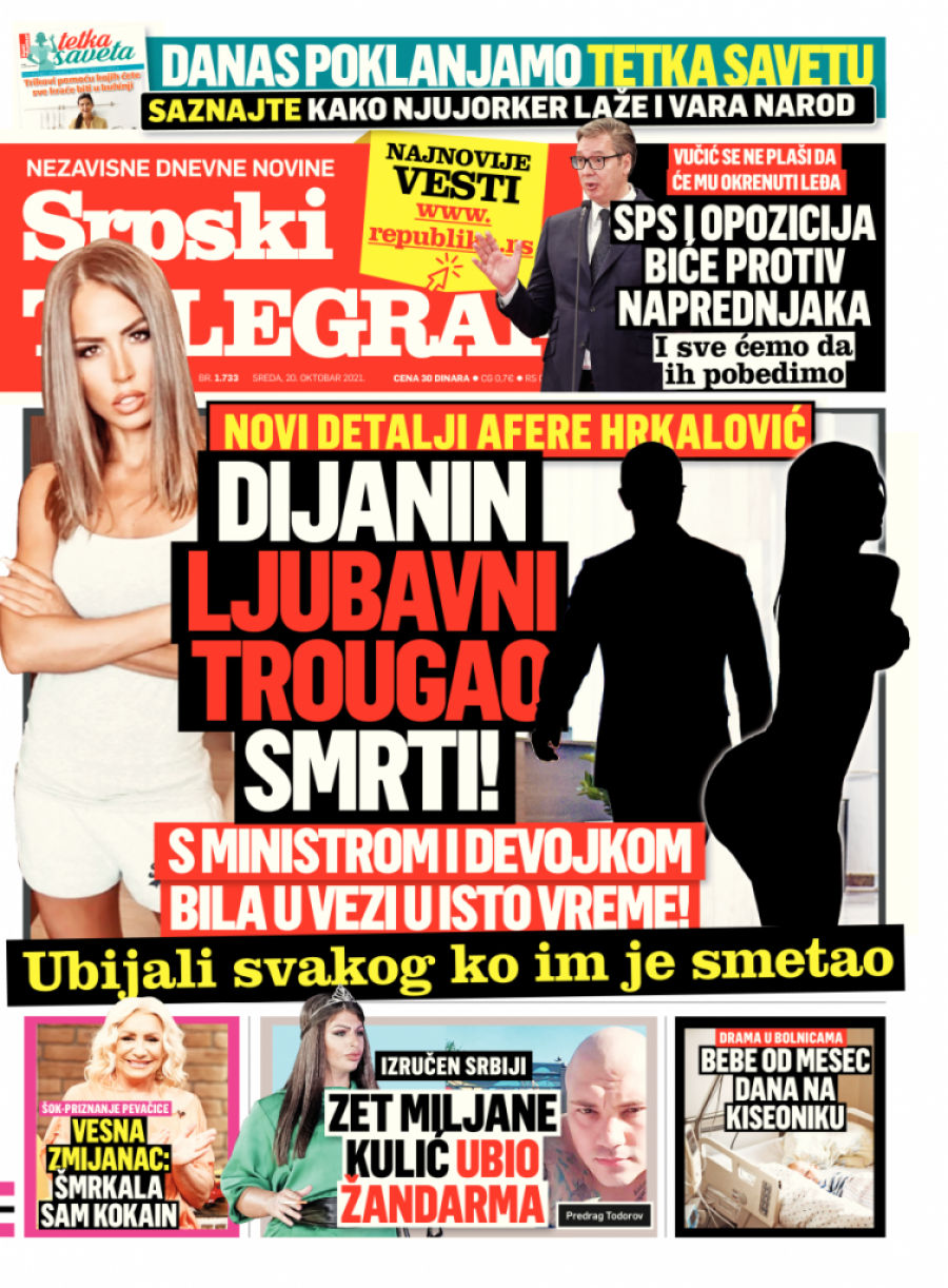 Srpski telegraf u štampanom izdanju za sredu 20. oktobar donosi pregršt važnih i interesantnih priča.