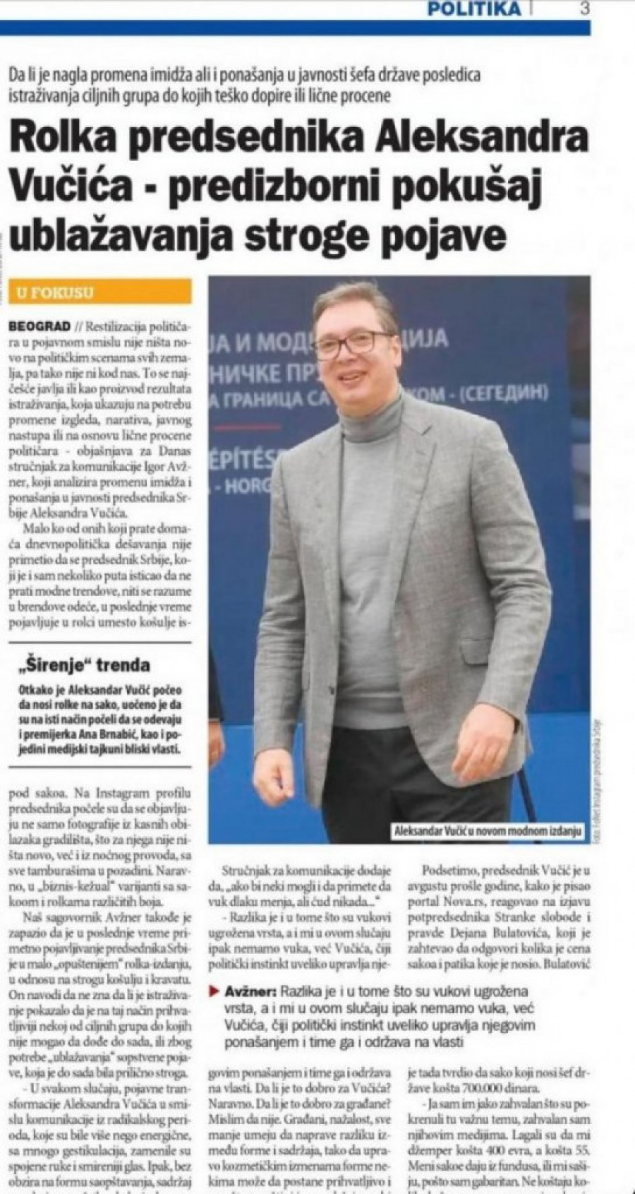 Da đilasovce najviše boli to što predsednika Srbije voli narod, veruje mu i podržava smo znali, ali sada su to i dokazali ludačkim tekstom u novinama Danas, u kojem Vučiću zameraju, ni manje ni više, već to što nosi rolku!