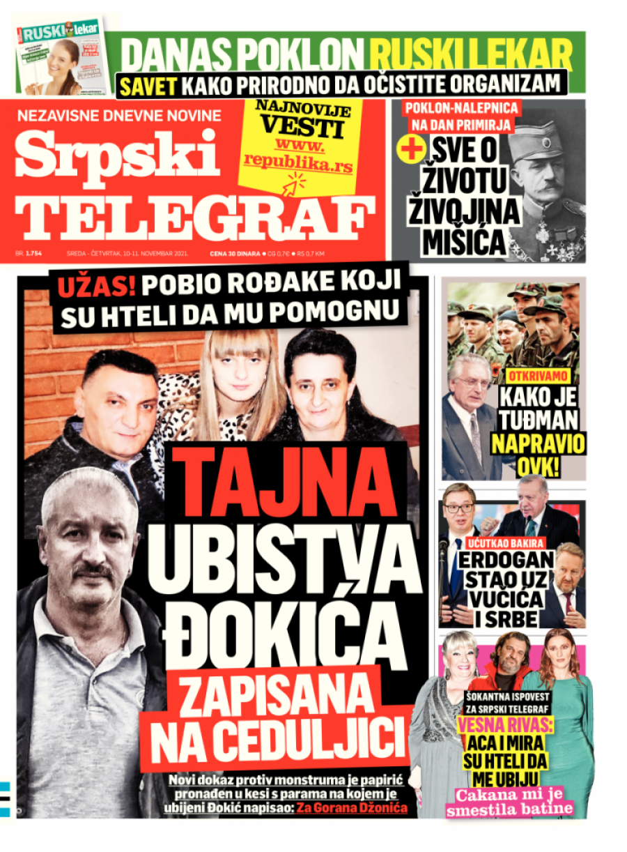 Srpski telegraf u štampanom izdanju za sreda 10. novembar donosi pregršt važnih i interesantnih priča: