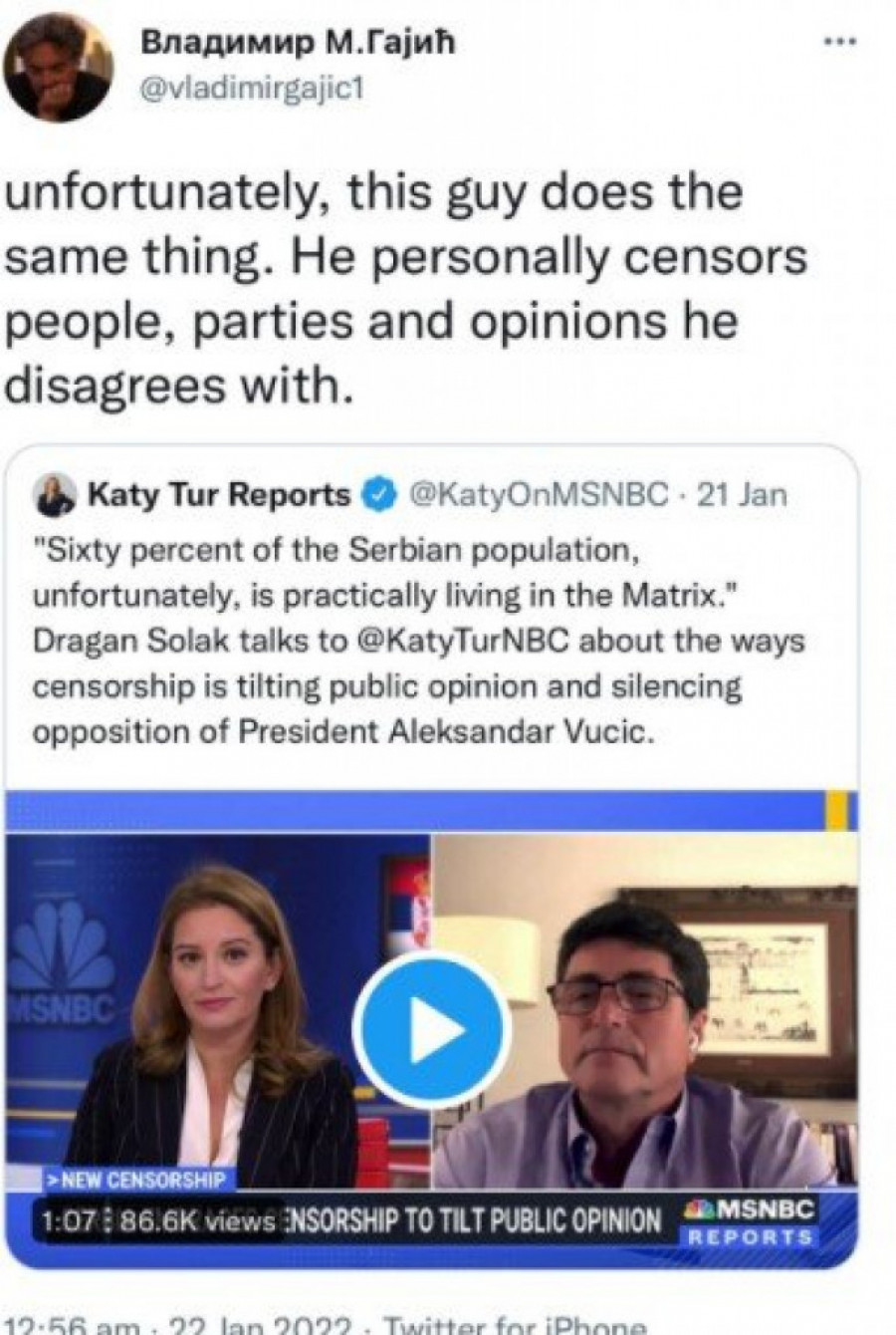 "On cenzuriše svaku stranku, svakog čoveka i svako mišljenje sa kojim se ne slaže!"