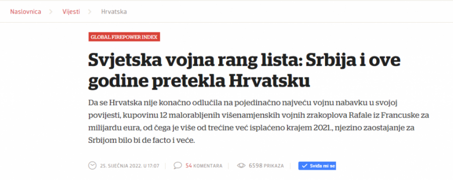 I HRVATI PRIZNALI: Srbija je već drugu godinu zaredom vojno snažnija od Hrvatske!